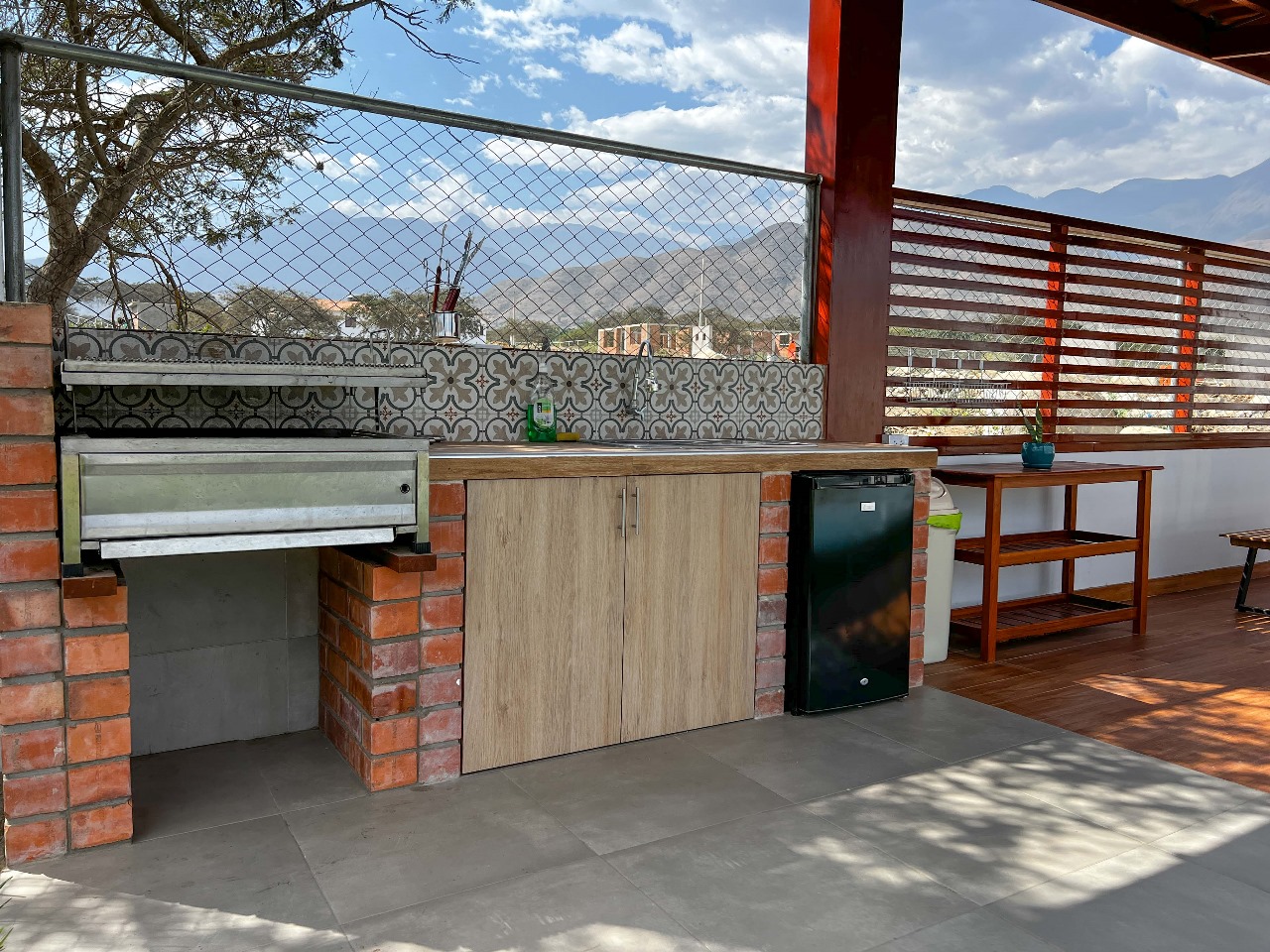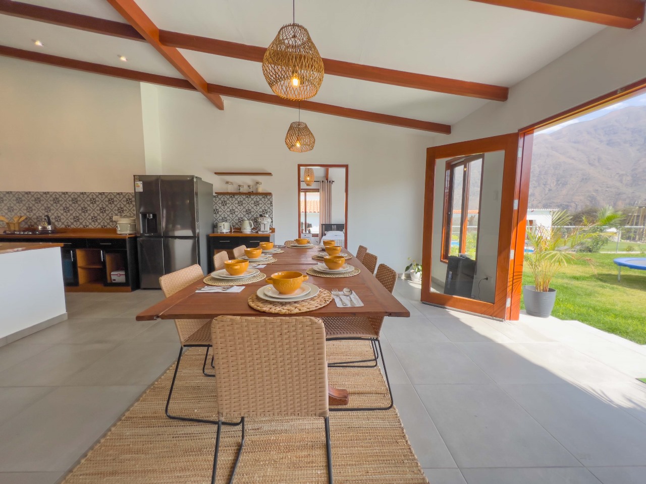 Las instalaciones exteriores son igualmente impresionantes, con una piscina grande para relajarse, una zona de parrilla para celebrar encuentros al aire libre, un comedor en terraza para disfrutar de las comidas con vistas panorámicas, y una acogedora zona de fogata para compartir historias bajo las estrellas. La propiedad incluye también una amplia cochera para hasta 8 autos, garantizando comodidad y seguridad para todos los huéspedes.