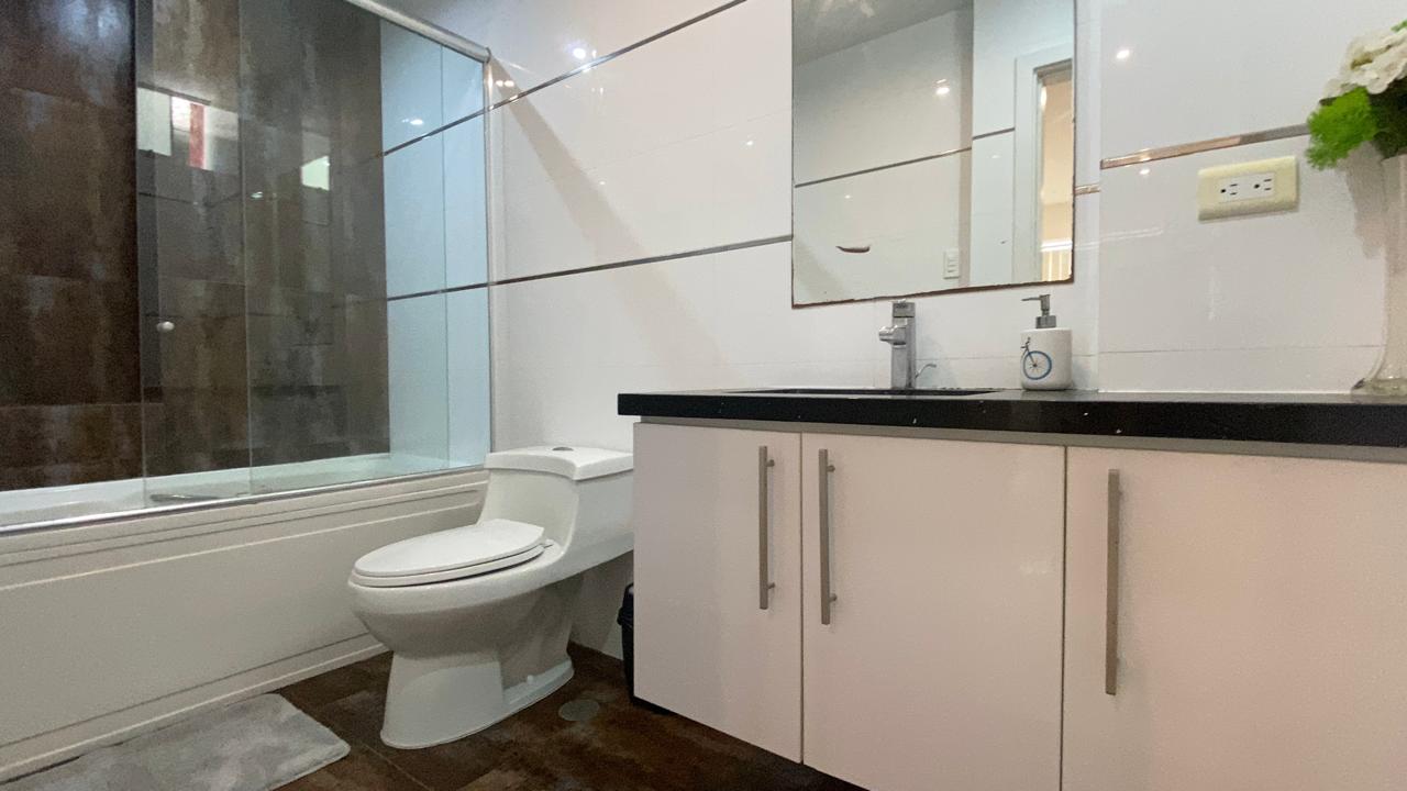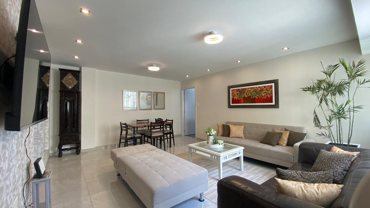 Cuenta con sala, comedor, cocina cerrada, tres  habitaciones la pricipal con baño, 1 baño compartido, lavandería y area de servicio.
