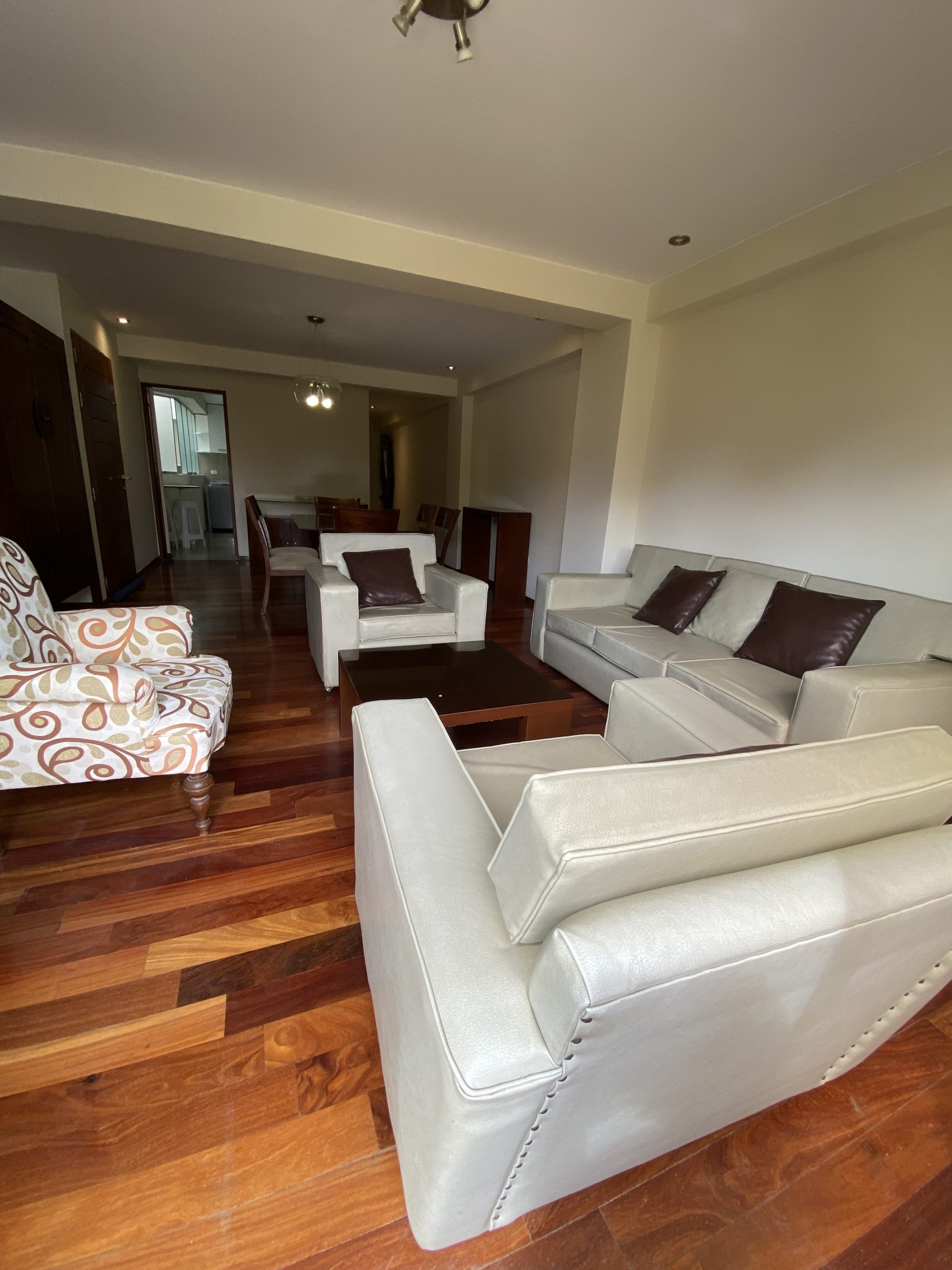 Amplio departamento amoblado en 3 piso con ascensor, frente a parque, acogedor e iluminado. Listo para habitar.