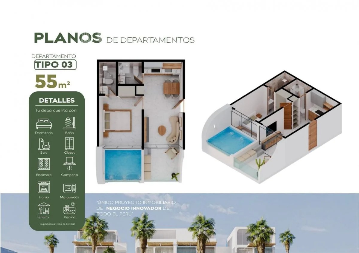 - Estos depas estarán dentro de un condominio privado y seguro, tendrá acceso directo al club house. Departamentos de diseño desde 55 m2, 61 m2, 79 m2, 81 m2 y 85 m2.