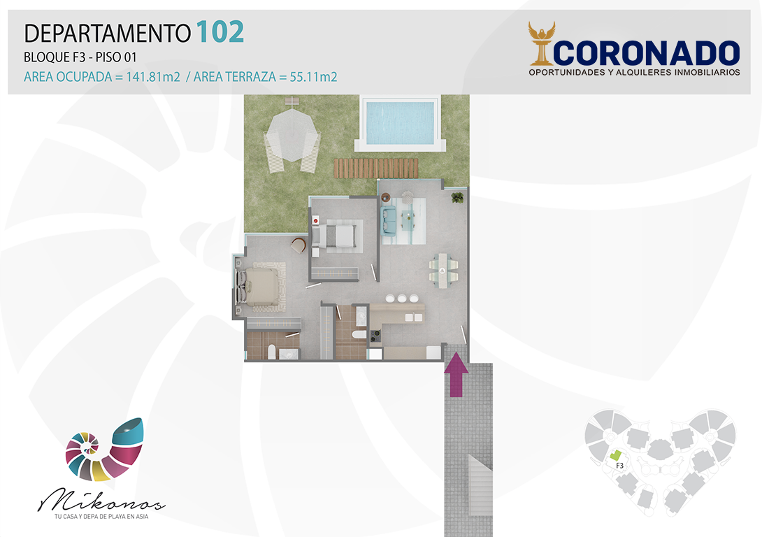 MIKONOS 1 PISCINA Y 1 ESTACIONAMIENTO EN RRPP