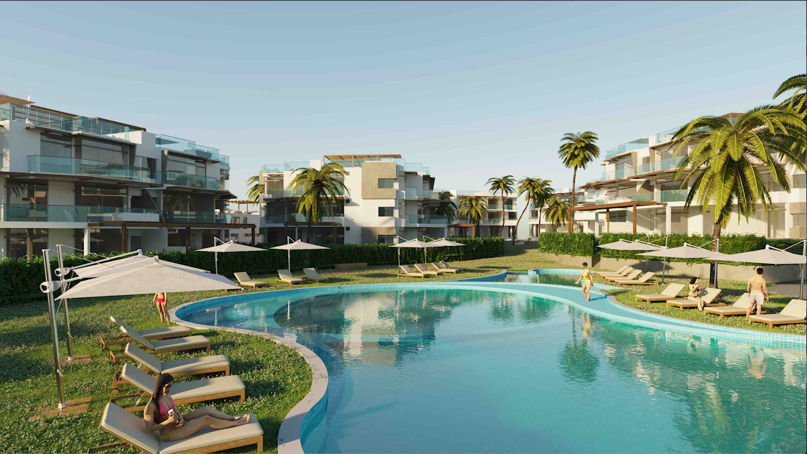Un diseño moderno y colorista en donde las piscinas y las amplias áreas verdes alcanzan hasta un 60% del conjunto habitacional.