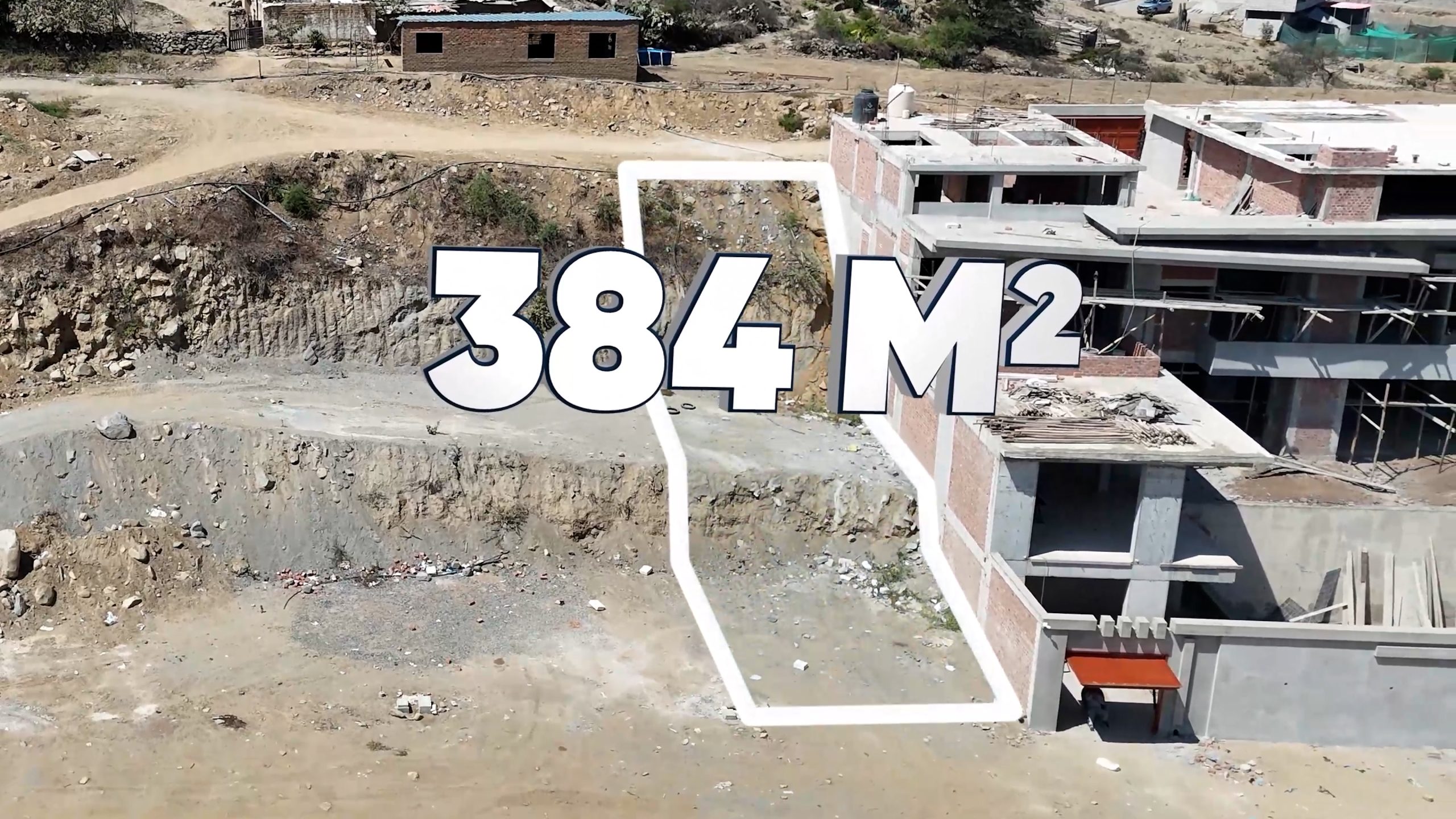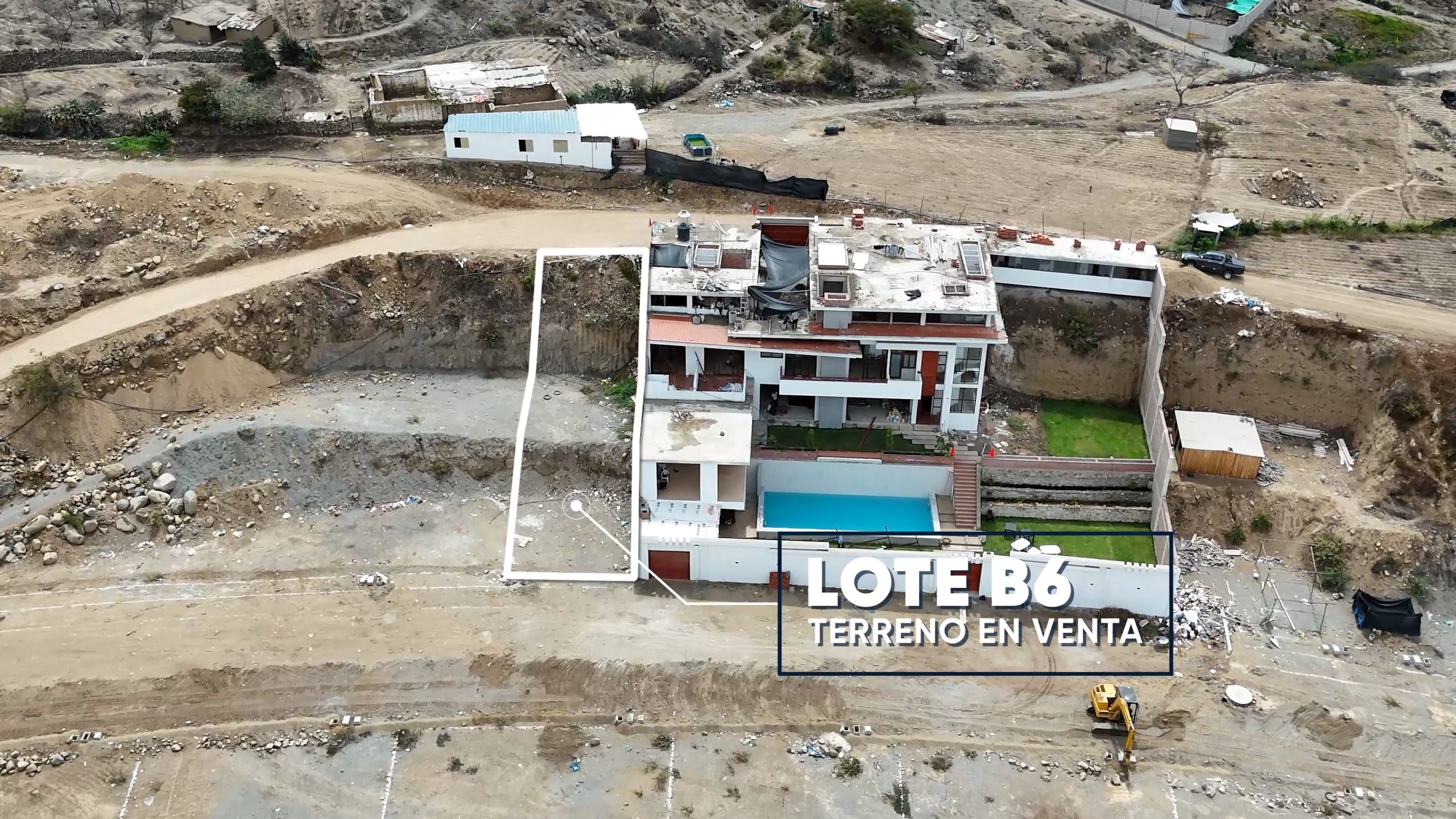 Lote B6 con un área de terreno de 384.67 m2., colinda con una mega construcción de casa de campo.